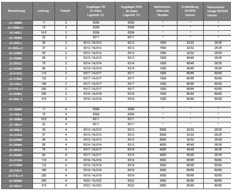 Offene Kugellager werden in der Regel in größere Drehstrommotoren ab der Baugröße 160 eingebaut. Hier finden Sie eine Aufstellung mit den notwendigen Daten zu Elektromotoren mit beidseitig offenen Lagern.